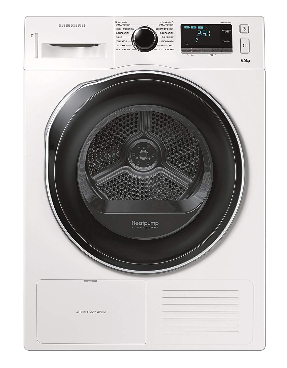 Schnitt im großen ETM-Vergleichstest 2017 als zweitbester Trockner unter insgesamt neun Modellen ab: der Samsung-Wärmepumpentrockner DV80K6010CW. (Bildquelle: amazon.de)