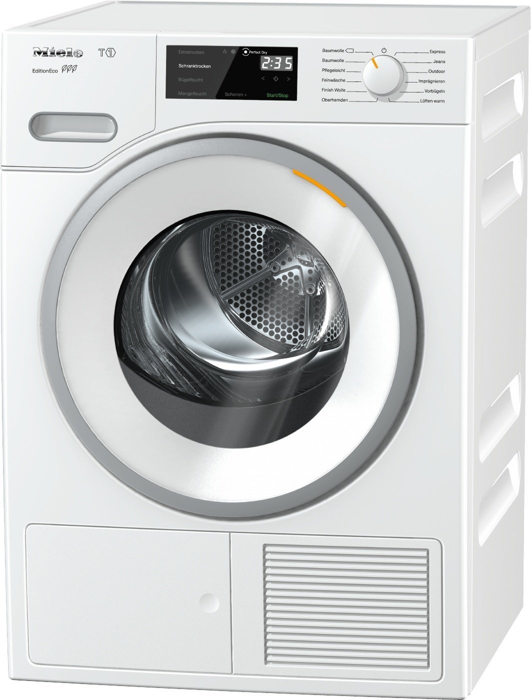 Teuer in der Anschaffung, sparsam im Betrieb: der Miele TWF 500 WP Edition Eco, ein Wärmepumpentrockner mit selbstreinigendem Kondensator. (Bildquelle: amazon.de)