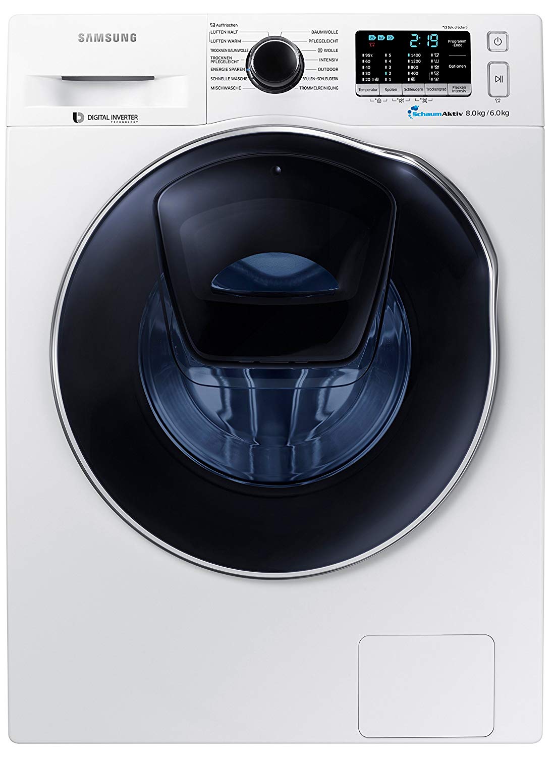Konnte die Redaktion von ETM Testmagazin 2016 überzeugen: Modell WD80K5400OW/EG mit 1.400 Umdrehungen/Minute. Gut zu erkennen ist auch die AddWash-Klappe zum Nachlegen von Textilien während des Waschvorgangs. (Bildquelle: amazon.de)