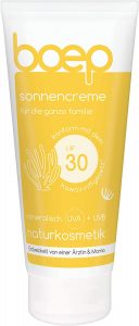 Etwas teurer, aber aus der Naturkosmetik und für die ganze Familie geeignet: die „gute“ Sonnencreme von boep mit LSF 30. (Bildquelle: amazon.de)