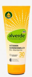 Lichtschutz mit Schattenseite: Laut Anbieter enthält die Vitamin-Sonnenmilch dm / Alverde den UV-Filter Titanidoxid in Nanopartikelgröße. (Bildquelle: meindm.at)
