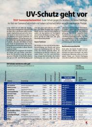 Es wurden in Zusammenarbeit mit der Stiftung Warentest 16 Sonnenschutzmittel geprüft. Das Testurteil reichte von „sehr gut“ bis „nicht zufriedenstellend“.Als Testkriterien dienten Einhalten des ausgelobten Schutzes, Feuchtigkeitsanreicherung, Anwendung sowie Beschriftung und Verpackung.