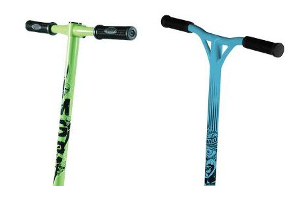 Typisch für alle Stunt-Scooter ist die „T“-Form und 360-Grad-Schwenkbarkeit des Lenkers. Angeboten werden Ausführungen mit Klemmvorbauten, bei denen das Lenkrohr per Schraubschelle am Steuerrohr fixiert wird, und sogenannte Monobloc-Bars, deren Bestandteile verschweißt und gegebenenfalls mit Streben verstärkt sind. Bevorzugtes Material ist Cromoly-Stahl, eine sehr feste und gleichermaßen leichte Legierung. Scooter aus der Einsteigerklasse werden aber häufig nur mit Lenkern aus ebenso leichtem, aber weit weniger robustem Aluminium bestückt.