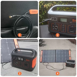 Das Anschließen von Solarpanels am Solargenerator ist ganz einfach und wird bei jedem Hersteller, hier Jackery, eindeutig beschrieben. (Bildquelle: jackery.com)