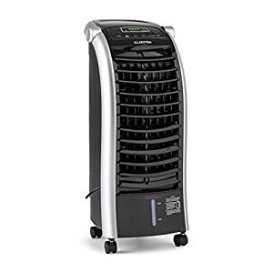 Abkühlung für knapp 120 Euro? Klarstein warnt vor übertriebenen Erwartungen, ohne seinen Maxfresh abzuwerten: Der Luftkühler-Ventilator mit Befeuchtungsfunktion sei in der Lage, das Raumklima durch Verdunstung von Wasser zu verbessern. Eine Klimaanlage im eigentlichen Sinn sei er aber nicht. (Bildquelle: amazon.de)