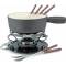 Als weitere Materialien kommen noch Aluminium – die Töpfe sind erschwinglicher als Edelstahlmodelle, aber nicht so hochwertig und beständig – sowie Gusseisen vor. Letztere sind oft mit einer zusätzlichen Emailleschicht versehen, weswegen sie sich als Universal-Töpfe gleichermaßen für Fleisch-Fondues wie auch für Käsefondues und Schoko-Fondues eignen. Die Beschichtung verhindert nämlich ein Anbrennen. Edelstahl, Kupfer und Aluminium dagegen sind für ein Käse- und Schoko-Fondue suboptimal. Für Stahl-Keramik-Töpfe hingegen gilt dasselbe wie für emaillierte Gusseisen-Modelle.