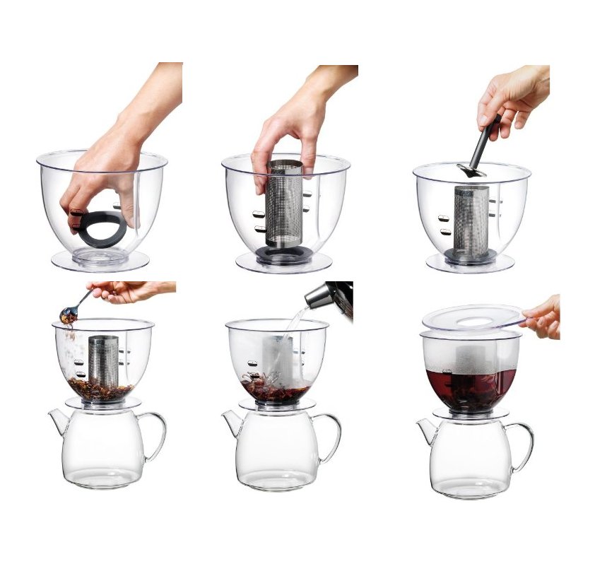 Genau betrachtet sind Teezubereiter des ersten Typs lediglich Teekannen, die mit einem Filter ähnlich wie bei einer French-Press-Kaffeemaschine ausgestattet sind. Das Besondere liegt also darin, dass das Teesieb meistens nicht herausgenommen werden muss. Der Tee wird stattdessen nach dem Ziehen im Filter nach unten gedrückt, um den Kontakt mit dem Wasser zu unterbinden. Die Zubereitung von heißem Wasser sowie das Achtgeben auf die Ziehdauer nehmen diese Geräte dem Nutzer nicht ab. Einige Exemplare können den Tee immerhin warmhalten, da es sich entweder um eine Thermoskanne handelt oder die Kanne mit einem Isoliermatel umgeben ist. Je nachdem, wie fein der Tee ist, kann es bei diesem System jedoch passieren, dass Rückstände der Teeblätter den Filter überlisten und der Tee daher nachzieht. Für Liebhaber besonders feiner Teesorten ist diese Zubereitungsart also nicht unbedingt optimal. Bei der Modellwahl sollte ferner darauf geachtet werden, dass der Filtereinsatz möglichst tief in die Kanne reicht, am besten bis fast auf den Boden. Denn nur dadurch ist gewährleistet, dass sich auch kleinere Mengen Tee herstellen lassen.