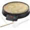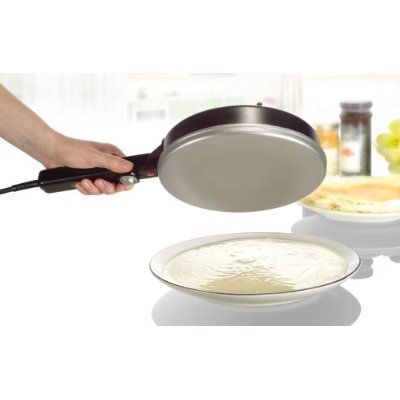 Eindeutig etwas mehr Übung erfordert das Verteilen des Teigs auf einem Standgerät. Anfängern wird daher empfohlen, besonders auf zwei Ausstattungsmerkmale zu achten. Zum einen auf eine Backfläche mit Rand, damit der Teig seitlich nicht so leicht überlaufen kann. Dieser Rand erschwert allerdings das Wenden der Crêpes mit dem flachen Spachtel. Eine Temperaturregelung hingegen ist unbestreitbar sinnvoll. Bei einigen Modellen geschieht dies stufenlos, bei anderen in festgelegten Heizstufen, wobei die Auswahl möglichst groß sein sollte. Ein Temperaturregler verhindert, dass der Teig zu schnell auf der heißen Platte anbackt und dann nicht mehr verteilt werden kann. Anfänger reduzieren zum Einfüllen des Teigs am besten die Temperatur und heizen die Platte erst nach dem Verteilen der Teigmasse hoch. Apropos Temperatur: Zwischen den einzelnen Modellen gibt es enorme Unterschiede, die maximale Hitze reicht von rund 220 Grad bis weit über 300 Grad. Letzteres ist von Vorteil, denn die meisten Crêpes-Teige sollten idealerweise sehr schnell bei hohen Temperaturen ausgebacken werden. Die Größe wiederum ist reine Geschmackssache. Crêpes-Maker gibt es mit einem Durchmesser von 20 bis weit über 30 Zentimeter. Faustregel dabei: Je größer, desto mehr ähnelt das Ergebnis einer „echten“ Crêpe.Handhabung und Reinigung: Pfanne vs. Standgeräte