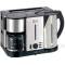 Die Idee, die drei zentralen Gerätekomponenten für ein Frühstück zusammenzufassen, ist schon etwas älter. Sie wurde allerdings anders umgesetzt, nämlich als sogenannte „Frühstückscenter“. In den meisten Fällen bestehen diese 3-in-1-Kombigeräte aus Kaffeemaschine, Toaster und Wasserkocher, manchmal wurde auch der Wasserkocher weggelassen und dafür eine kleine Heizplatte für Spiegeleier angebracht. Sie schaffen zwar ebenfalls Ordnung in der Küche, haben aber zwei große Nachteile: Zum einen sind sie vergleichsweise bullig und beanspruchen daher eine relativ große Fläche für sich. Versagt auf der anderen Seite eine Komponente, muss mitunter die komplette Maschine entsorgt werden. Praktischer ist daher die derzeit angesagten Set-Form aus Einzelkomponenten. Diese lassen sich beliebig über die Küche(zeile) verteilen, und da jede Komponente auch einzeln verkauft wird, lassen sich kaputte Geräte einfach ersetzen. Übrigens: Beim Kauf eines 3-er-Sets lässt sich gegenüber den Einzelkomponenten oft Geld sparen, sicher ist das jedoch nicht. Um eine kleine Rechenaufgabe kommt daher niemand herum.