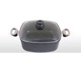 Hochwertiger Bräter für Induktion - Pfanne mit 5,0l Volumen und hoher Rand, ideal für fettfreies Braten auf allen Herdarten. Hitzebeständig bis 250°C, backofenfest bis 180°C, mit Glasdeckel für optimale Garüberwachung.
