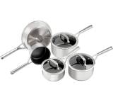 „Kochtopf-Sets. Das Set an der Spitze des Siegertreppchens ist mit mehr als 600 Euro das teuerste. Aber auch ab einem Preis von 219 Euro sind gute Topfsets aus Edelstahl erhältlich.“ Testumfeld: Im Vergleich waren 14 Topfsets. Acht Produkte waren „gut“, die übrigen sechs „durchschnittlich“. Getestete Kriterien waren jeweils