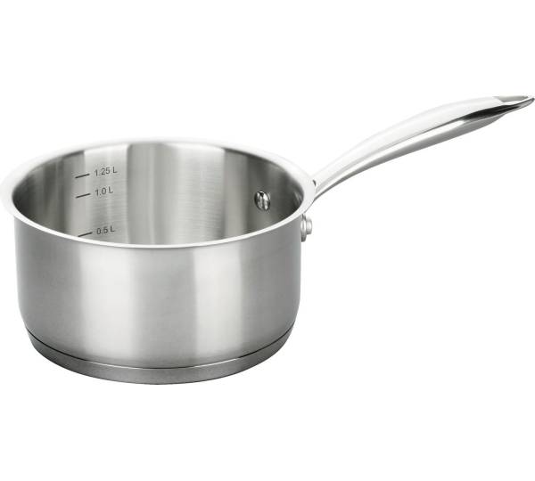 Preiswerte, induktionsfähige Edelstahl-Stielkasserolle aus dem Discounter. (Bild: lidl.de)