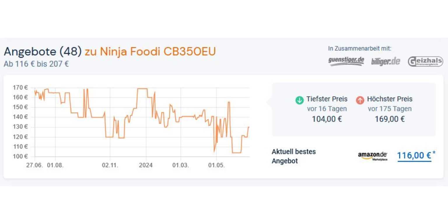 Unser Tipp: Auf Nummer sicher gehen. Nutzen Sie unsere Preishistorie und vergleichen Sie den Preis mit ähnlichen Produkten. So entlarven Sie Scheinrabatte sofort.