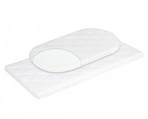 Babymatratzen, die speziell für die gesunde Lagerung unterwegs konzipiert wurden, sind entsprechend der Kinderwagenform häufig mit abgerundeten Ecken ausgestattet. (Bildquelle: julius-zoellner.de)