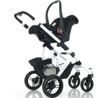 Als Kombikinderwagen hat er eine lange Nutzungsdauer ab der Geburt bis ins Kindergartenalter: Zu Beginn liegt der Nachwuchs in der Babywanne, etwa mit sechs Monaten steigt er auf den mitgelieferten Sportsitz um, ein separat erhältlicher Autositz der Normgruppe 0+ kann mittels Adapter ebenfalls für den Baby-Transport verwendet werden. Besonderes Plus: Die Babywanne ist mit 76 x 36 Zentimetern so gut dimensioniert, dass Babys nicht schon vor Erreichen des Sitzalters auf den Sportsitz umsteigen müssen. Letzterer wiederum ist in der Rückenlehne mehrfach bis in die Ruheposition verstellbar – für kurze Nickerchen in Shoppingpausen findet sich auch fortgeschrittener Nachwuchs nur selten zu alt. Weiterer Vorteil: Die Sitzeinheit ist in beide Richtungen montierbar – ein Vorteil vor allem dann, wenn der Nachwuchs noch sehr kein ist oder etwas isst, hier haben Eltern gerne Sichtkontrolle.