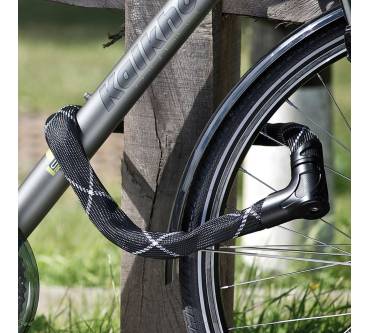 Das Abus Iven Chain 8210 ist ein robustes Kettenschloss, das sowohl vor Diebstahl als auch vor Lackschäden schützt. Es verfügt über eine 8 mm starke Vierkantkette aus gehärtetem Stahl und eine langlebige, hochflexible Kunstfaserummantelung, die Kratzer am Fahrradrahmen verhindert. Erhältlich in Längen von 85, 110 und 140 cm, bietet es vielseitige Anwendungsmöglichkeiten. Das Schloss wiegt je nach Länge zwischen 1,8 und 2,5 kg und ist mit einem benutzerfreundlichen Wendeschlüssel ausgestattet. Es erreicht die Sicherheitsstufe 9 von Abus und ist für den Schutz von Fahrrädern bei mittlerem Diebstahlrisiko konzipiert.