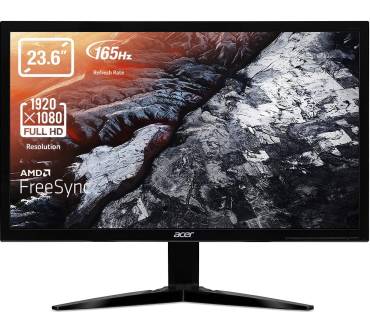 Acer hat mit dem KG241QS einen sehr günstigen Gaming-Bildschirm im Sortiment, der seinen niedrigen Preis nur mit gewissen Abstrichen erreicht. Denn der 24-Zöller setzt auf ein TN-Panel: Dieses erlaubt zwar eine sehr hohe Geschwindigkeit, patzt allerdings baubedingt in Sachen Farbwiedergabe und Kontrastwert. Kurz: Fotofreunde und Kino-Fans sollten zu einem Bildschirm mit VA- oder besser IPS-Panel greifen. Immerhin ist der Acer aufgrund seiner 165 Hz und sehr hohen Reaktionsgeschwindigkeit voll Gaming-tauglich und würde sich sogar für Turnierspieler eignen. Full HD sorgt für eine angenehme Bildschärfe auf 24 Zoll. Auf der Rückseite prangen zwei HDMI-Buchsen und ein DisplayPort-Anschluss. Das ist für den Preis ordentlich, obwohl USB leider fehlt. Gegen den Turniereinsatz und lange Sessions spricht die mangelnde Ergonomie – der KG241QS erlaubt lediglich die Änderung seiner Neigung.