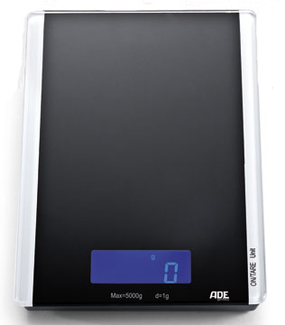 Mit rund 15 Euro (Amazon) ist die Küchenwaage KE 856 Annica von ADE Germany sicherlich so preiswert, dass für sie das Attribut „unschlagbar günstig“ verwendet werden darf. Denn das Gerät hat im Grunde genommen alles zu bieten, was eine gute digitale Küchenwaage auszeichnet. Die maximale Tragkraft liegt bei fünf Kilogramm und ist daher auch für größere Mengen geeignet. Außerdem besitzt sie eine sogenannte Tara-Funktion (Zuwiegefunktion), um die einzelnen Zutaten ohne Gefäß beziehungsweise mehrere Zutaten nacheinander bequem abwiegen zu können.