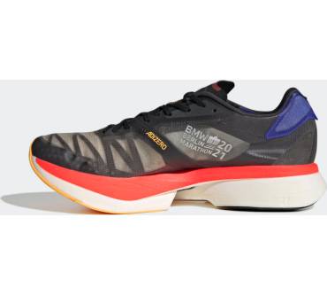 Der Vorgänger des Adizero Adios Pro 2.0 von Adidas zählt zu den beliebtesten Wettkampfschuhen des Jahres 2020. Mit dem aktualisierten Modell kann der Hersteller in Tests erneut überzeugen. Die Läuferinnen und Läufer sowie die Expert:innen der Testmagazine loben den Laufschuh mit Carbonelementen in den höchsten Tönen. Im Vergleich zu den meisten anderen Carbon Laufschuhen ist beim Adidas Modell keine Carbonplatte, sondern mehrere Stäbe aus Carbon, sogenannte Rods verbaut. Im Zusammenspiel mit der Rocker Sohle bescheinigen die Testläufer:innen dem Schuh eine sehr gute, dynamische Energierückführung und einen angenehmen, geschmeidigen Abrollvorgang. Das extrem dünne und atmungsaktive Obermaterial ist so zart, dass man teilweise hindurchsehen kann. Dennoch bietet der Schuh mit kleinen Stützelementen an wichtigen Stellen, wie der Ferse, ausreichend Unterstützung für eine gute Passform. Der Schuh bietet sich für Sie an, wenn Sie bei Wettkämpfen von kurzen bis langen Distanzen ein angenehmes Tragegefühl genießen und dabei Bestzeiten laufen möchten. Der Hersteller gibt an, dass das aktualisierte Modell leichter als der Adizero Adios Pro ist. Tester kommen allerdings zu einem anderen Ergebnis. Dennoch ist der Wettkampfschuh sehr leicht für einen Carbonlaufschuh.