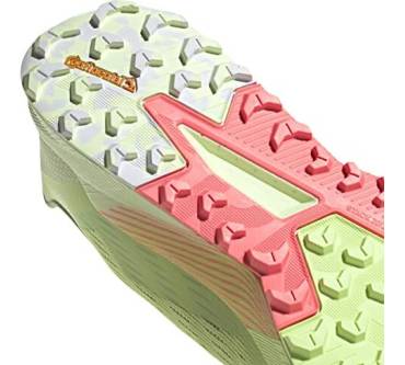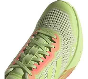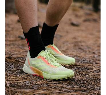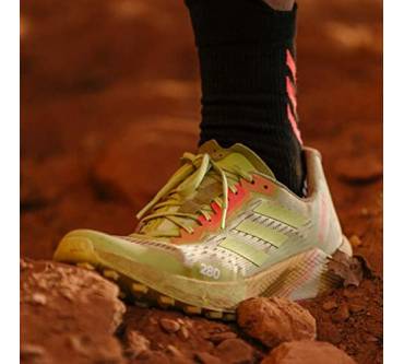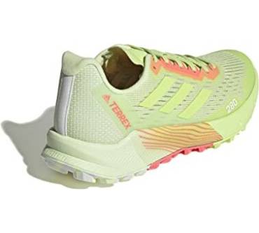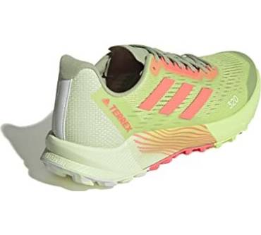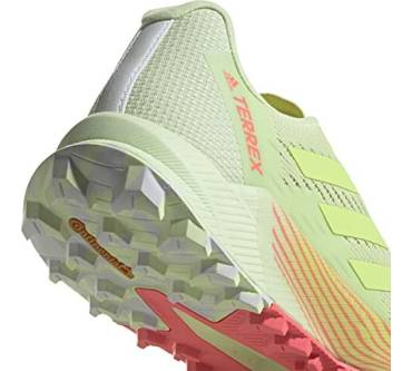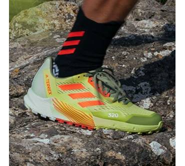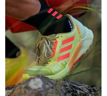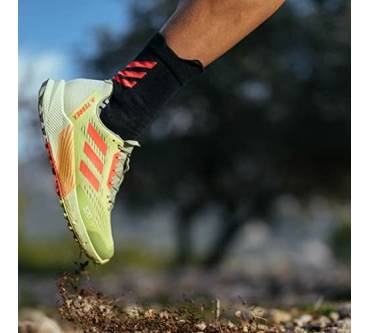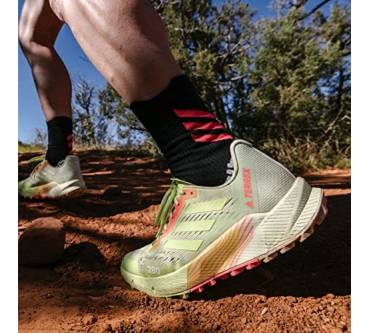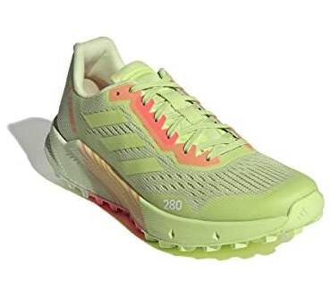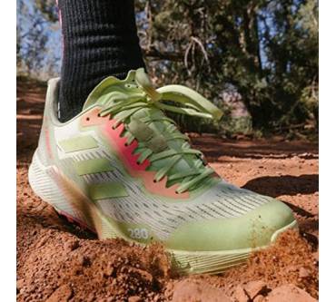 Mit sieben Millimetern Sprengung kommt der Terrex Agravic Flow 2.0 Läufern entgegen, die Probleme mit verkürzter Wadenmuskulatur haben oder es generell bevorzugen, wenn die Ferse etwas höher steht als der Vorderfuß. Der Schuh ist mit einer stark dämpfenden Zwischensohle ausgestattet. Dadurch soll auch das häufige Laufen auf asphaltierten Wegen den Gelenken weniger zusetzen. Die Außensohle kommt von Continental. Sie besteht aus einer speziellen Gummimischung für optimale Grip und Rutschfestigkeit. Eine wechselbare Einlegesohle verbessert die Passform und den Tragekomfort. Tester von Laufzeit kritisieren das Gewicht des Laufschuhs. Knapp über 300 Gramm pro Schuh in mittlerer Größe sind aber eigentlich nicht zu viel.