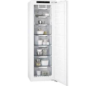 Der Einbau-Tiefkühlschrank von AEG fasst 204 Liter, wobei innerhalb von 24 Stunden bis zu 16,5 Kilogramm Lebensmittel zuverlässig heruntergekühlt werden. Zumindest mit temporär zugeschaltetem Schnellgefrier-Funktion klappt das gut, wie die Stiftung Warentest nachgewiesen hat. Schnellgefrieren ist generell eine empfehlenswerte Option, da damit das Gefriergut zügig und somit schonend auf die Zieltemperatur gebracht wird. Einmal gekühlt, hält der Schrank die Temperatur sehr zuverlässig.