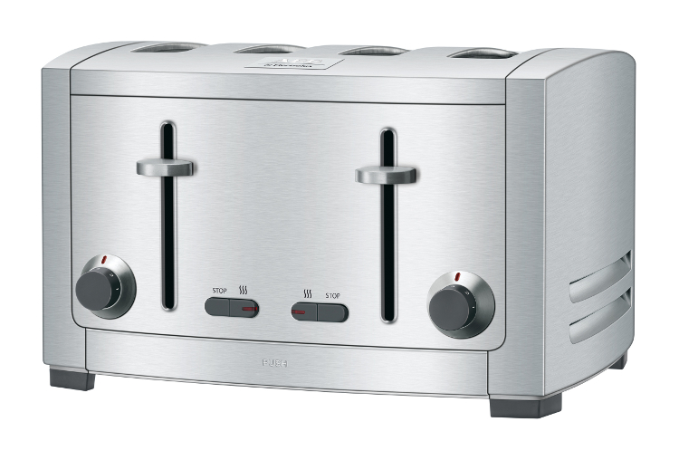 Der Toaster AT8100 von AEG kann etwas, was viele Toaster nicht können: Vier Scheiben Brot auf einmal rösten. Dafür ist der AT8100 mit zwei Doppelschlitzen ausgestattet. Eine weitere Besonderheitist laut Hersteller die leise Arbeitsweise, denn durch die Soft-Spring-Funktion springen die Scheiben nicht aus dem Toaster heraus, sondern werden sanft nach oben gefahren.