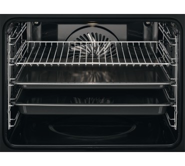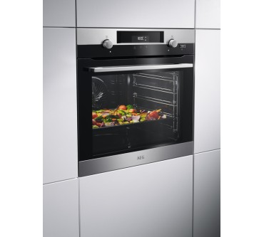Mit vielen Funktionen hat AEG den Backofen BPK556220M ausgestattet: Neben Ober-/Unterhitze, Heiß- und Umluft können Sie Grillen und Dampfgaren. Die Temperatureinstellung von maximal 300 Grad ist zudem ideal für Pizzen. Der Ofen ist mit einer Aufheizzeit von nur rund sechs Minuten sehr schnell bereit und bietet gleichmäßige Ergebnisse auch auf mehreren Ebenen. Die Bedienung der beiden Drehregler ist Tests zufolge einfach und intuitiv. So lässt sich die Temperatur in Fünf-Grad-Schritten sehr genau justieren und die Betriebsart wählen. Auf automatische Programme verzichtet AEG bei diesem Modell allerdings – ein kleines Manko, das angesichts ansonsten interessanter Funktionalität verschmerzbar ist. Der Herstellerpreis von rund 1.400 Euro ist allerdings vergleichsweise hoch, trotz guter Merkmale. Eine Alternative kann der Sharp KS-73S56BSS-EU sein, dem lediglich die Pizza-Funktion fehlt.