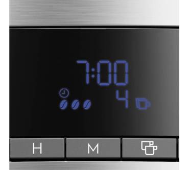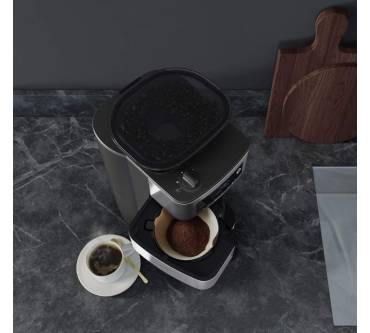 Die Filterkaffeemaschine CM6-1-5ST von AEG bietet die Möglichkeit, Kaffeepulver einzufüllen oder mahlt die Bohnen frisch. Sie wählen zwischen drei Mahlgraden und passen das Kaffeemehl damit optimal an Ihre Getränkevorlieben an. Das erledigt die Maschine mit einem Kegelmahlwerk. Dieses arbeitet langsamer als eine Scheiben-Konstruktion und damit aromaschonend und leise. Leider kitzelt das etwas zu kühle Wasser jedoch nicht alle Nuancen aus den Bohnen heraus. Die Handhabung dürfte einfach gelingen: Das Display ist übersichtlich, der Timer lässt sich ruckzuck programmieren. Der Hersteller legt praktischerweise einen Pinsel für die Reinigung des Mahlwerks bei. Für rund 150 Euro erhalten Sie hier eine insgesamt gute Leistung.