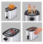 Ein weiteres besonderes Kennzeichen des AT 5210 sind neben der edlen, geschenkwürdigen Verpackung die beiden extrabreiten Toastschlitze, die dazu in der Lage sind, auch dicke Brotscheiben aufzunehmen. Die exakte Breite der Schlitze hat der Hersteller allerdings – wie leider in den meisten Fällen so üblich – nicht angegeben, dafür aber den Hinweis nicht vergessen, dass alle Toasts entsprechend ihrer Größe automatisch zentriert werden.