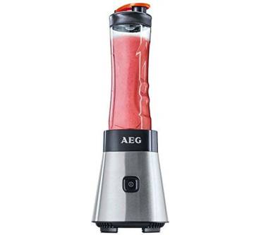 Der Behälter selbst besteht aus Kunststoff und hält Temperaturen zwischen -40 und +80 Grad aus – sogar Suppen lassen sich also pürieren. Beim Mixen, Pürieren und Co wiederum geht der AEG sorgfältig vor, wie die zahlreichen Kundenrezensionen zum unmittelbaren Vorgänger SB2400 belegen – der übrigens, wie schon viele vermutet haben, mit hoher Wahrscheinlichkeit ein Klon des Nachfolgers ist. Jedenfalls waren bisher über 90 Prozent aller Kunden von der Leistung des Minimixers überzeugt, was nicht zuletzt an der hohen Geschwindigkeit (23.000 U/min) des vierflügeligen Messers liegt. Lediglich Grüne Smoothies schafft der AEG nicht – was kaum verwundert. Außerdem sollten die Zutaten immer mit etwas Flüssigkeit versetzt sein – was ebenfalls kein Manko ist, sondern in dieser Leistungsklasse vollkommen normal.