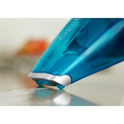 In puncto technischer Ausstattung handelt es sich bei dem AEG nämlich um einen prototypischen Akku-Handsauger für den Einsatz bei kleinen Missgeschicken im Haushalt oder zur schnellen Reinigung des Frühstückstisches oder eines kleinen Balkons. Die Akkulaufzeit ist auf knapp zehn Minuten begrenzt, zum Aussaugen des Autos in der Einfahrt taugt der AEG daher eher weniger. Dafür steht immerhin über die komplette Akkulaufzeit eine kontinuierlich hohe Saugleistung zur Verfügung, da das Gerät ohne Staubbeutel auskommt – was natürlich auch die Grundlage für seine Nass-Saugfunktion darstellt. In der Praxis dürfte es außerdem vermutlich auch sehr schwer fallen, den Staubbehälter voll zu bekommen. Mit einem Fassungsvermögen von 500 Millilitern ist er für die zehn Minuten Betriebszeit ausreichend gut gerüstet. Ein kleines Highlight wiederum stellt die Konstruktion des Einsaugstutzens dar. Er besitzt nämlich kleine Rollen, die effektiv verhindern, dass der Stutzen mit einem Kratzen und Schnarren über die Oberfläche des Untergrundes schabt und diese dabei beschädigen kann. Das Gewicht schließlich liegt bei etwas über 1.300 Gramm, womit der AEG zu den leichtesten Akku-Handsaugern auf dem Markt gehört und entsprechend handlich ist.