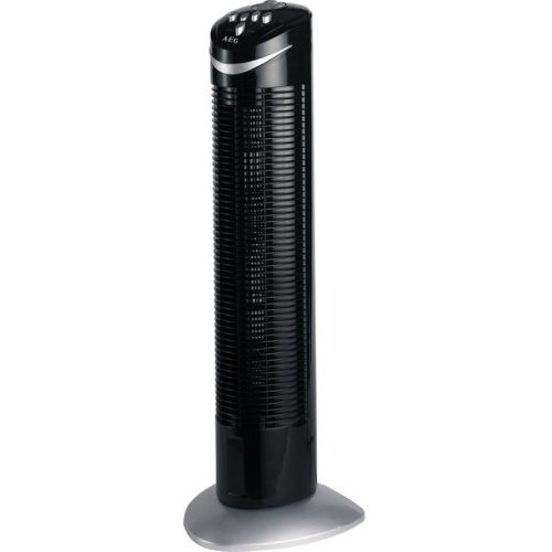 Ein sehr günstiges Gerät seiner Art ist der AEG T-VL 5531 Tower-Ventilator. Der kostet nicht einmal 40 Euro (zum Beispiel bei Amazon), bietet aber eigentlich alles, was ein komfortabler Ventilator bieten sollte. So verfügt der Ventilator über drei Stufen, in denen die Geschwindiglkeit und somit die Kühlleistung eingestellt werden kann. Auf eine Breeze-Funktion, also einen intervallartigen Luftausstoß, muss man aber leider verzichten. Dafür gibt es aber eine Oszillations-Stufe, durch die die kühle Brise auf Wunsch in einem Winkel von 90 Grad erfrischt. Das ist ein recht großer Winkel, viele Geräte schaffen nur 75 Grad. Die Oszillations-Funktion kann selbstverständlich auch ausgeschaltet werden.