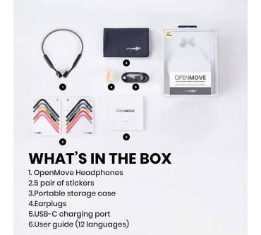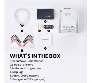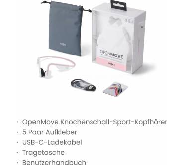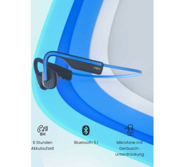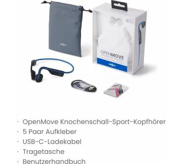 Wenn beim Sport die Kabel von Kopfhörern stören und True-Wireless-Ohrhörer zu unsicher sitzen, bietet AfterShokz mit dem OpenMove eine Alternative. Das Gerät besteht aus zwei Lautsprechern, die über ein Nackenband miteinander verbunden sind. Die Übertragung des Sounds erfolgt nicht über die Ohren, sondern über das Schläfenbein durch Knochenschall. Da die Ohren dadurch nicht verdeckt werden, können Außengeräusche wie beispielsweise von sich nähernden Fahrzeugen besser wahrgenommen werden. Im Umkehrschluss bedeutet dies aber, dass es keine Geräuschunterdrückung gibt. Kunden äußern sich über den Klang positiv. Allerdings darf dieser nicht mit dem von Over-Ear- oder On-Ear-Kopfhörern verglichen werden. Einstellungen wie die Lautstärkeregelungen erfolgen über eine Multifunktionstaste am Gerät, die sogar mit Handschuhen gut bedienbar sein soll.