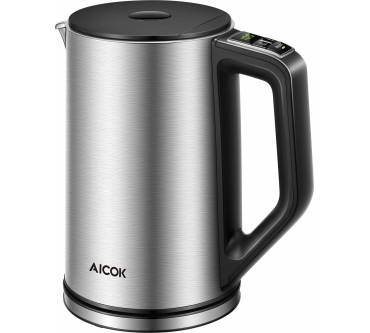 Temperaturvorwahl, Warmhaltefunktion, Edelstahl-Gehäuse – der Wasserkocher MK-HE1504 von Aicok macht einen hervorragenden ersten Eindruck. Die Tester von askgeorge küren ihn 2018 sogar zum Testsieger. Besonders die Temperatureinstellung in 5-Grad-Schritten, die Echtzeit-LED-Temperaturanzeige und der doppelwandige Behälter werden im Testbericht positiv erwähnt. Außerdem ist das Heizelement verdeckt integriert und der Kalkfilter ist nicht aus Plastik, sondern aus Edelstahl gefertigt. Die Tester kritisieren lediglich die Platzierung der Wasserstands-Skala im Innenraum und den hohen Stromverbrauch des Gerätes, selbst im Standby-Modus.