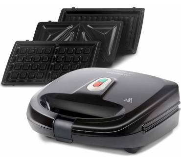 Mit einer Leistung von 750 Watt verspricht der Aigostar Sandwich Maker 3 in 1 eine schnelle Aufheizzeit und eine Zubereitung von knusprigen Toasts, Waffeln und anderen Speisen. Laut Hersteller soll er auch für Fleisch geeignet sein. Hähnchen oder Schweinefleisch dürften gelingen, für Steaks ist die Wattzahl zu gering. Das Gerät startet, sobald Sie den Stecker an den Strom nehmen. Ein Ein- und Ausschalter fehlt – ein Sicherheitsmanko. Sie können insgesamt drei Platten nutzen, die sich in der Spülmaschine reinigen lassen. Die Handhabung ist Tests und den Nutzern zufolge gut, leider lässt sich die Klappe bei einigen Lebensmitteln schwer schließen. Dafür bringt der Sandwich Maker gute Ergebnisse und das zu einem guten Preis: Rund 35 Euro zahlen Sie aktuell für den flexiblen Grill. Da sind kleine Mankos zu verschmerzen.