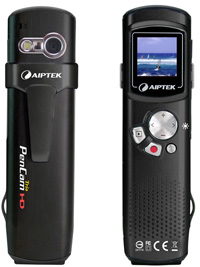 Der Aiptek PenCam HD Trio kann drei verschiedene Dinge tun – daher der Namenszusatz 'Trio'. Er filmt Videos in High Definition Qualität mit einer Auflösung von 1280 x 720 Pixeln, nimmt Fotos in einer Auflösung von 5 Megapixeln auf und kann als Diktiergerät verwendet werden. Die Tonaufnahmen können dabei über eine AV-Buchse mit Kopfhöhrern abgehört werden und es existiert zusätzlich ein analoger TV-Ausgang für den Ton. Die Videos werden mit einer Bildrate von 30 Bildern pro Sekunde aufgezeichnet und können sogar im Breitwandformat 16:9 aufgenommen werden. Egal was der Besitzer des HD Trio aufnimmt, alles wird auf dem internen Speicher des kleinen Gerätes abgelegt. Dieser weist eine Kapazität von 4 Gigabyte auf. Die Bilder können auf einem kleinen Monitor betrachtet werden: Ein 1,1 Zoll großes Display schmückt die Rückseite des PenCam HD Trio, der in Form und Größe an eine Fernbedienung erinnert.