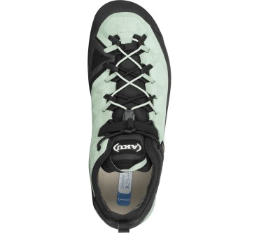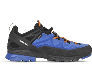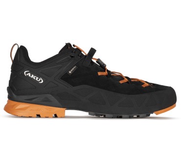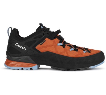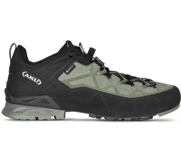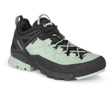 Der Aku Rock DFS GTX ist ein vielseitiger Approach-Schuh, der für Herren und Damen konzipiert wurde. Er kombiniert Leder und Mikrofaser im Obermaterial mit einer GORE-TEX-Membran, die für Atmungsaktivität und Wasserdichtigkeit sorgt. Der Schuh verfügt über ein innovatives Doppelschnürsystem, das eine individuelle Anpassung für verschiedene Aktivitäten ermöglicht. Mit einem Gewicht von 380 Gramm pro Schuh bietet er eine gute Balance zwischen Leichtigkeit und Stabilität. Die Vibram-Außensohle sorgt für zuverlässigen Grip auf unterschiedlichen Untergründen, während die Elica Natural Stride System-Technologie das natürliche Abrollverhalten unterstützt. Nachhaltigkeit wird durch die Verwendung von recyceltem Material im Schaft und die Kombination von Leder und Mikrofaser im Obermaterial betont.