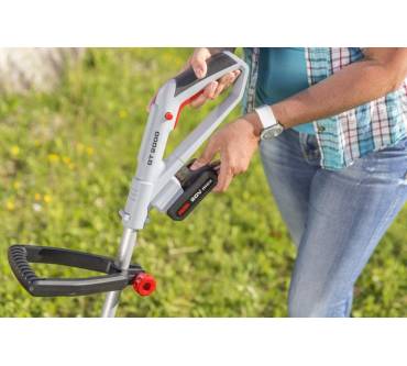 Im Test landet der Al-Ko im guten Mittelfeld, obgleich sich die Akkulaufzeit und die anschließende Akkuladezeit als eher enttäuschend herausstellen. Wenn die eine zu lang und die andere zu kurz ist, kann sich das als eine ärgerliche Bremse während der Gartenarbeit entpuppen. Vorbildlich jedoch zeigt sich der Trimmer bei der Nachstellung des Fadens, bei der Sie sich um fast nichts kümmern müssen: Sie erfolgt automatisch auf Knopfdruck. Gut funktioniert auch der integrierte Blumenschutzbügel, der dafür sorgt, dass Sie im Schwung gerade an Beetkanten nicht auch versehentlich Pflanzen kappen, die Sie nicht kürzen wollten. Weiterer Vorteil: Der Abstandshalter wirkt auch dem Fadenverschleiß zum Beispiel an Mauern entgegen. In der Handhabung erweist sich das Gerät also als bequem, die Trimmleistung und die Schnittqualität sind laut Warentester verbesserungswürdig. Das gilt auch bei der Lautstärke, die trotz „Flüsterantrieb“, wie es der Hersteller nennt, zwar deutlich niedriger als bei einem Elektrotrimmer ist, nicht aber mit dem leisesten im Test mithalten kann.
