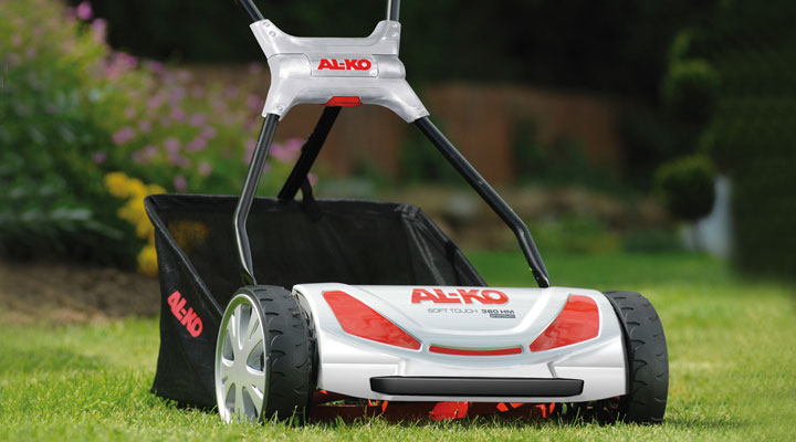 Der Soft Touch 380 HM Premium ist ein weiteres Modell der neuen Spindelmäher von Al-Ko. Wie der 2.8 HM Classic arbeitet auch der 380 HM Premium durch seine berührungslose Schneidetechnik sehr präzise und leise. Allerdings hat das Gerät mit 38 Zentimetern eine größere Schnittbreite und ist somit auch für etwas größere Flächen von 250 qm geeignet. Damit auch längere Zeit bequem gearbeitet werden kann, hat der 380 HM einen ergonomischen Holm, der mit einem Mittelstück versehen ist, das dem Holm zusätzlich Stabilität geben soll. Außerdem lässt sich der 10 Kilogramm leichte Handmäher durch die Schneidtechnik einfacher und durch die gummierten Räder sicherer bewegen.