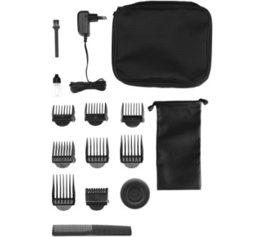 Aldi Nord bietet unter seiner Eigenmarke Ambiano diesen Haarschneider zum attraktiven Preis von unter 20 Euro. 7 Aufsätze für Schnittlängen von 3 bis 30 mm sind dabei, mittels Drehregler können Sie zusätzlich Feineinstellungen vornehmen. Um Ihr Haar auszudünnen bzw. mehr Volumen zu erzielen, ist ein Effilierkamm ebenfalls im Lieferumfang. Für dichteren Haarwuchs können Sie einen Turbo zuschalten und damit die Leistung kurzfristig erhöhen. Das geht natürlich zu Lasten des Akkus, dessen Laufzeit mit bis zu 2 Stunden aber ordentlich bemessen ist. Das Modell ist nach IPX5 spritzwassergeschützt, aber nicht wasserdicht. Zur Reinigung können Sie den Kopf also maximal unter fließendem Wasser abspülen, aber nicht eintauchen. Für die Pflege der Klinge gibt Aldi ein Fläschchen Schmieröl mit.