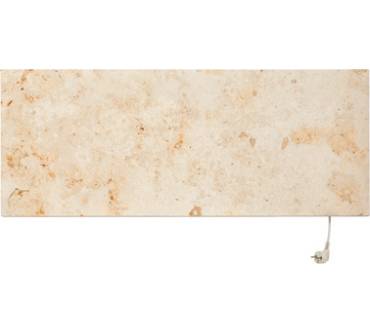 Der Infrarot-Heizstrahler von Marmony wandelt elektrische Energie direkt in langwellige Wärmestrahlung um. Diese Methode des Heizens gilt als besonders effizient. Die Front des Heizers besteht aus stilvollem Naturstein. Sie können zwischen Jura-Kalk und grauem Marmor wählen. Die Leistungsaufnahme beträgt 800 Watt und soll für die Beheizung von Räumen mit einer Fläche von bis zu 25 Quadratmetern ausreichen. Die Montage des Heizers gestaltet sich einfach. Das benötigte Montagematerial ist im Lieferumfang enthalten. Elektroinstallationen sind nicht notwendig, das Gerät wird über einen Schuko-Stecker mit dem häuslichen Niederspannungsnetz verbunden. Bedienen können Sie den Infrarot-Strahler über einen Funk-Thermostat, der ebenfalls mitgeliefert wird.