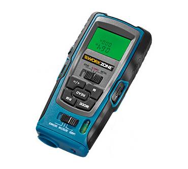 Der handliche Multidetektor von Workzone ist ein Multitalent für wenig Geld. Denn man kann nicht nur Entfernungen messen, sondern auch stromführende Leitungen damit finden sowie Holz- und Metallkonstruktionen. Besonders hilfreich ist das, wenn Sie in einem Altbau ein paar Löcher bohren wollen. Aber auch beim Aufhängen von Bildern oder Hängeschränken in der Küche ist er eine Unterstützung, denn er kann auch horizontale und vertikale Linien projizieren. Wie genau das Modell arbeitet und welche Fehlertoleranz es aufweist, ist leider unbekannt. Fakt ist, ein reiner Entfernungsmesser kostet in der Regel schon das Doppelte.