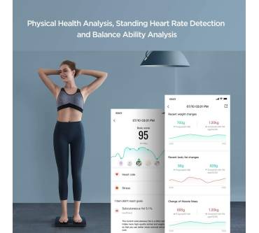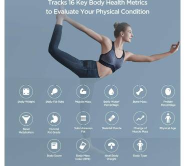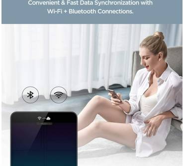 Die smarte Körperwaage von Amazfit überzeugt in erster Linie mit ihrer reichhaltigen Ausstattung. Sie können bis zu 12 Personenprofile abspeichern, diese werden dann auch automatisch von der Waage erkannt, sobald sie auf ihr stehen. Das Display zeigt neben dem Gewicht auch den Körperfettanteil an, allerdings ist es nicht so deutlich lesbar und ziemlich dunkel im Vergleich vieler anderer Produkte. Durch den Gastmodus können auch nicht eingespeicherte Personen auf die Waage gehen. Und wenn Sie schwanger sind oder ihr Haustier wiegen wollen, so nimmt Ihnen die smarte Personenwaage das Rechnen ab, indem automatisch die Differenz zu ihrem Gewicht angezeigt wird. In der Schwangerschaft könnten Sie damit Ihre Gewichtszunahme besser im Blick behalten. Leider ist das Modell nicht offline nutzbar, aber dafür können Sie die Daten entweder per Bluetooth oder WLAN an die App senden.