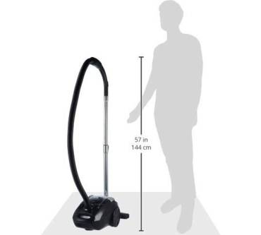 Dieser AmazonBasics-Staubsauger mit Beutel arbeitet mit maximal 700 Watt. Das lässt auf eine gute Saugkraft schließen, was viele Nutzer bestätigen. Empfehlenswert ist er mit dem sehr geringen Saugradius von sechs Metern vor allem für kleine Flächen. Dafür ist der Staubbeutel mit drei Litern großzügig dimensioniert. Zu den Pluspunkten zählt auch der integrierte HEPA-Filter, der kleinste Partikel wie Allergene aufnimmt. Er ist waschbar, braucht also nicht ausgetauscht zu werden. Mit knapp über fünf Kilogramm wiegt der Sauger wenig. Das ist einerseits ein Vorteil, denn er lässt sich einfach manövrieren. Andererseits kann er so auch leicht umkippen. Sie investieren knapp 85 Euro in den Sauger. Insgesamt passt der Preis zur Leistung.