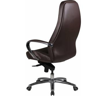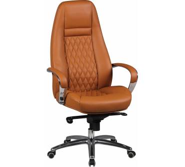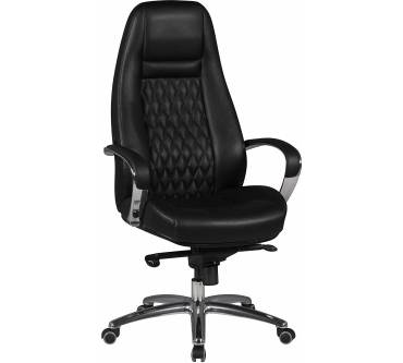 Der Chefsessel Austin aus dem Hause Amstyle ist mit einer 50x50-Zentimeter-Sitzfläche sehr großzügig dimensioniert. Die Sitzhöhe reicht von 48 bis 58 Zentimeter, empfohlen wird eine Höhe ab 38 bis 40 Zentimeter. Der Drehstuhl eignet sich daher eher für große und aufgrund der breiten Sitzfläche für schwerere Menschen – eigentlich. Denn er hält „nur“ 120 Kilogramm aus; das passt nicht zusammen. Der Austin-Chefsessel bietet eine Nackenstütze und eine Wippmechanik. Diese unterstützt Sie bei Bewegungen im Sitzen, ist allerdings eher für kurze Nutzungen geeignet. Der Bezug aus Echtleder verspricht ein angenehmes Sitzklima. Insgesamt ist der Amstyle Austin ein Drehstuhl für gelegentliche Nutzung. Dafür passt der Preis: Sie zahlen rund 315 Euro, dürfen für den niedrigen Kurs allerdings keine lange Haltbarkeit erwarten.