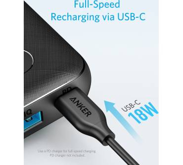 Die Anker PowerCore 10000 PD Redux ist eine Neuauflage der beliebten PD-Powerbank, die noch etwas kompakter ausfällt als ohnehin schon und einen großen zentralen Test-Button besitzt, der die enthaltene Ladung über vier kleine eingelegte Dioden anzeigt. Bislang versteckten sich Taste und Informationen an der Seite der Powerbank. Weiterhin ist der USB-C-Anschluss Kernfeature der Powerbank, denn er liefert einen Output von starken 18 W, viel schneller schaffen das nicht einmal die dedizierten Original-Schnellladegeräte der großen Hersteller. Über USB-A werden auch noch immerhin 12 W abgegeben. Die Konkurrenz verharrt in der Regel immer noch bei 10 W. Besonders bemerkenswert ist aber, dass die Anker auch selbst mit voller Leistung geladen wird – bei 10.000 mAh ein echter Segen.