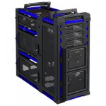 Das Antec LanBoy Air Blue PC-Gehäuse scheint nur aus Meshperforationen zu bestehen und bietet genausoviel Luft um die Komponenten wie das Antec Skeleton, obwohl es ein rundum geschlossenes Gehäuse ist. Auf den ersten Blick erscheint der LanBoy als wäre er aus Fischertechnik Elementen zusammengebaut worden. Im Prinzip ist der modulare Aufbau auch sehr ähnlich.