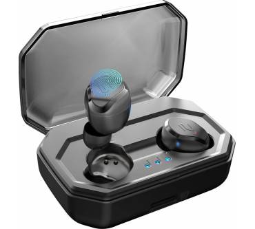 Mit Bluetooth in der Version 5.0 beherrschen die Kopfhörer einen vergleichsweise neuen Übertragungsstandard, der zudem die Sprachqualität beim Telefonieren verbessern kann. Das allerdings funktioniert laut zahlreicher Rezensionen nicht wirklich gut. Ähnlich kritisch wird der feste Sitz im Ohr bewertet, was jedoch wegen fehlender Haltebügel nicht überraschen darf. Etwas groß geraten ist auch das Etui mit integriertem Akku, der jedoch 30 Aufladung bereitstellen kann und damit seine Größe in jedem Fall rechtfertigt. Er ist deshalb sogar kräftig genug, um den Smartphone-Akku aufladen zu können. Die Batterie in den Kopfhörern selbst hält dagegen nicht sehr lang. Nach spätestens 3 Stunden ist Schluss, je nach Lautstärke kann die Zeit aber noch einmal deutlich sinken.