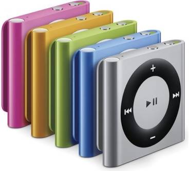 Auch ohne Display punktet der neue Shuffle beim Bedienkomfort: Wenn einem partout nicht einfällt, welcher Titel gerade gespielt wird, drückt man einfach die VoiceOver-Taste an der Seite und lässt sich den Namen vorlesen. Der mit einem 2-Gigabyte großen Flash-Speicher ausgestattete 4G schlägt mit knapp 50 Euro zu Buche – zum Beispiel bei amazon.