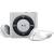 Das Steuerkreuz ist etwas größer ausgefallen als bei den Vorgängermodellen, Apple selbst spricht von 18 Prozent mehr Fläche. Auf die VoiceOver-Funktion des Shuffle 3G hat der Hersteller trotz Klickbedienung erfreulicherweise nicht verzichtet: Drückt man die entsprechende Taste an der Geräteseite, dann werden der Name des gerade gespielten Titels, der Interpret oder die Wiedergabeliste „vorgelesen“. VoiceOver „spricht“ 25 Sprachen und macht sich auch dann bemerkbar, wenn der integrierte Lithium-Ionen-Akku neue Energie braucht. Eben jener ist in zwei Stunden zu 80 Prozent und in drei Stunden zu 100 Prozent geladen, die maximale Laufzeit beziffert Apple mit bis zu 15 Stunden. Entweder lädt man den Akku direkt über den 3,5 Millimeter-Kopfhöreranschluss und die USB-Schnittstelle eines Computers - oder man entscheidet sich für das separat erhältliche Netzteil. Zum Lieferumfang des 31,6 Millimeter breiten und samt Clip nur 8,7 Millimeter tiefen Players im Aluminium-Gehäuse gehören die üblichen Apple-Ohrhörer.